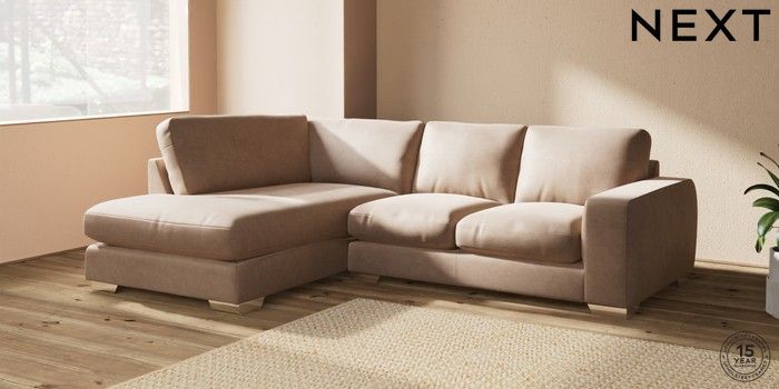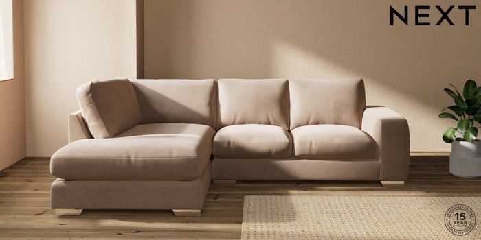 7.2.10 Houghton Deep Relaxed Sit Medium Corner Chaise - Left Hand Luxe Chenille Mid Natural Large Square Angle - Chrome Metal | Made Click here to use our website with more accessibility support, for example screen readers