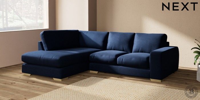 7.2.10 Houghton Deep Relaxed Sit Medium Corner Chaise - Left Hand Luxe Chenille Navy Blue Large Square Angle - Light | Made Click here to use our website with more accessibility support, for example screen readers