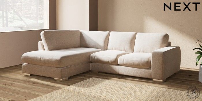7.2.10 Houghton Deep Relaxed Sit Medium Corner Chaise - Left Hand Multi Weave Mid Natural Large Square Angle - Chrome Metal | Made Click here to use our website with more accessibility support, for example screen readers