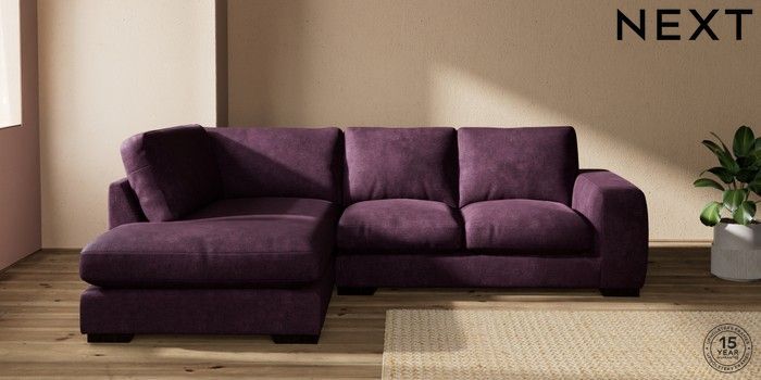 7.2.10 Houghton Deep Relaxed Sit Medium Corner Chaise - Left Hand Plush Chenille Dark Plum Purple Large Square Angle - Dark | Made Click here to use our website with more accessibility support, for example screen readers