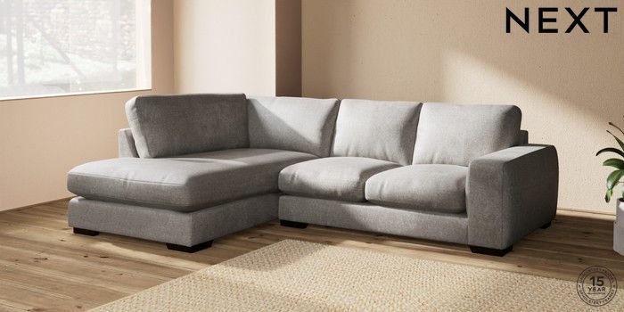 7.2.10 Houghton Deep Relaxed Sit Medium Corner Chaise - Left Hand Plush Chenille Light Grey Large Square Angle - Dark | Made Click here to use our website with more accessibility support, for example screen readers