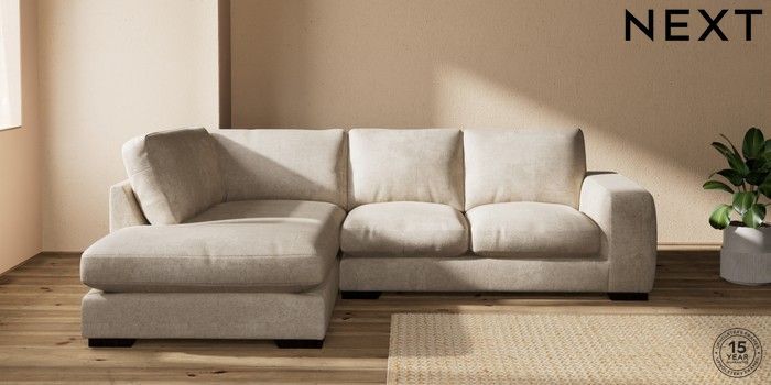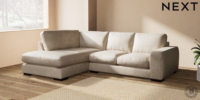 7.2.10 Houghton Deep Relaxed Sit Medium Corner Chaise - Left Hand Plush Chenille Light Natural Large Square Angle - Dark | Made Click here to use our website with more accessibility support, for example screen readers