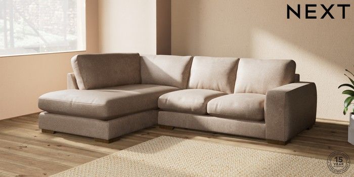 7.2.10 Houghton Deep Relaxed Sit Medium Corner Chaise - Left Hand Plush Chenille Mid Natural Large Square Angle - Mid | Made Click here to use our website with more accessibility support, for example screen readers