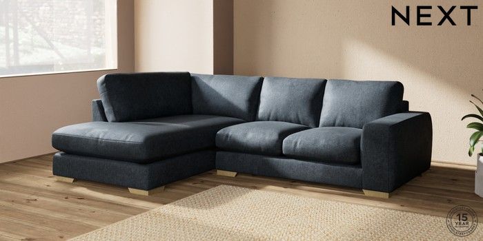 7.2.10 Houghton Deep Relaxed Sit Medium Corner Chaise - Left Hand Plush Chenille Slate Blue Large Square Angle - Light | Made Click here to use our website with more accessibility support, for example screen readers