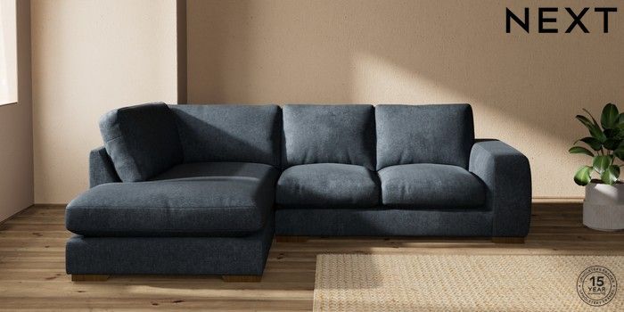 7.2.10 Houghton Deep Relaxed Sit Medium Corner Chaise - Left Hand Plush Chenille Slate Blue Large Square Angle - Mid | Made Click here to use our website with more accessibility support, for example screen readers