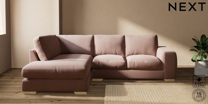 7.2.10 Houghton Deep Relaxed Sit Medium Corner Chaise - Left Hand Plush Velvet Easy Clean Mid Natural Large Square Angle - Light | Made Click here to use our website with more accessibility support, for example screen readers