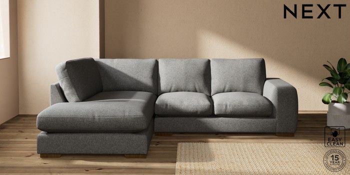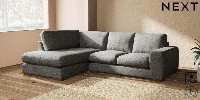 7.2.10 Houghton Deep Relaxed Sit Medium Corner Chaise - Left Hand Tweedy Blend Easy Clean Dark Grey Large Square Angle - Mid | Made Click here to use our website with more accessibility support, for example screen readers