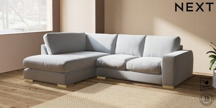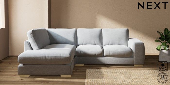 7.2.10 Houghton Deep Relaxed Sit Medium Corner Chaise - Left Hand Tweedy Blend Easy Clean Light Silver Grey Large Square Angle - Light | Made Click here to use our website with more accessibility support, for example screen readers