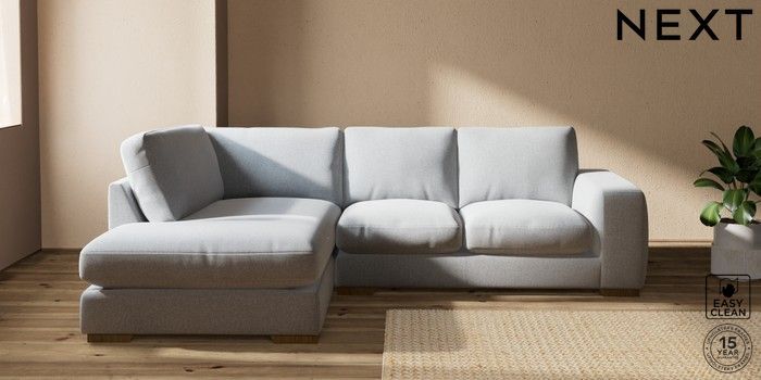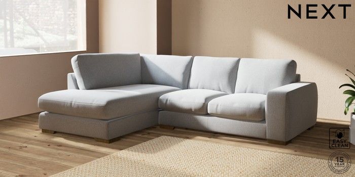 7.2.10 Houghton Deep Relaxed Sit Medium Corner Chaise - Left Hand Tweedy Blend Easy Clean Light Silver Grey Large Square Angle - Mid | Made Click here to use our website with more accessibility support, for example screen readers