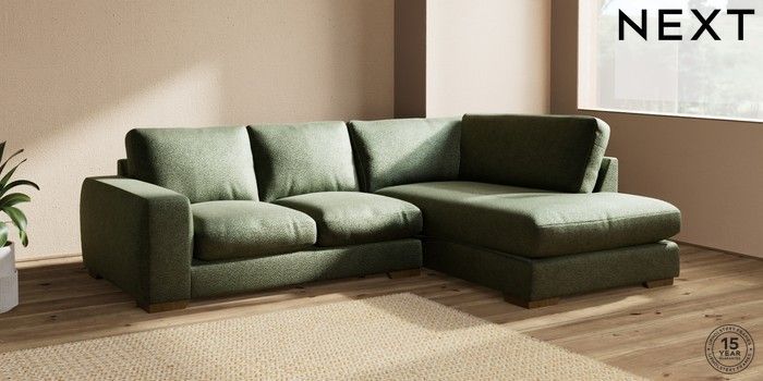 7.2.10 Houghton Deep Relaxed Sit Medium Corner Chaise - Right Hand Boucle Chenille Dark Moss Green Large Square Angle - Mid | Made Click here to use our website with more accessibility support, for example screen readers