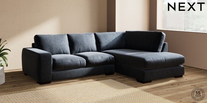 7.2.10 Houghton Deep Relaxed Sit Medium Corner Chaise - Right Hand Boucle Chenille Dark Slate Blue Large Square Angle - Dark | Made Click here to use our website with more accessibility support, for example screen readers