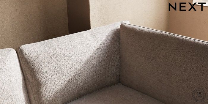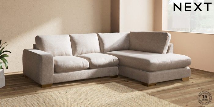7.2.10 Houghton Deep Relaxed Sit Medium Corner Chaise - Right Hand Boucle Chenille Light Natural Large Square Angle - Brushed Brass | Made Click here to use our website with more accessibility support, for example screen readers