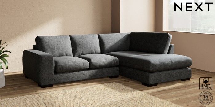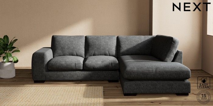 7.2.10 Houghton Deep Relaxed Sit Medium Corner Chaise - Right Hand Boucle Weave Easy Clean Charcoal Grey Large Square Angle - Dark | Made Click here to use our website with more accessibility support, for example screen readers