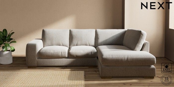 7.2.10 Houghton Deep Relaxed Sit Medium Corner Chaise - Right Hand Chunky Boucle Easy Clean Dove Large Square Angle - Mid | Made Click here to use our website with more accessibility support, for example screen readers