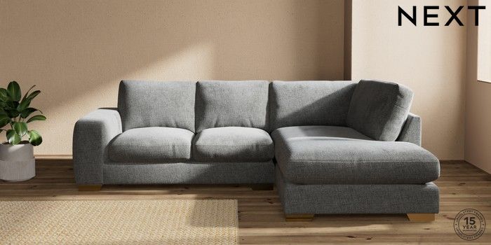 7.2.10 Houghton Deep Relaxed Sit Medium Corner Chaise - Right Hand Chunky Chenille Dark Grey Large Square Angle - Brushed Brass | Made Click here to use our website with more accessibility support, for example screen readers