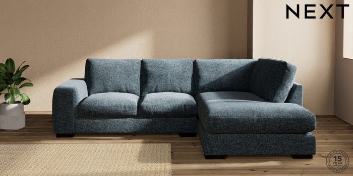 7.2.10 Houghton Deep Relaxed Sit Medium Corner Chaise - Right Hand Chunky Chenille Dark Navy Blue Large Square Angle - Dark | Made Click here to use our website with more accessibility support, for example screen readers