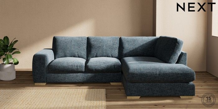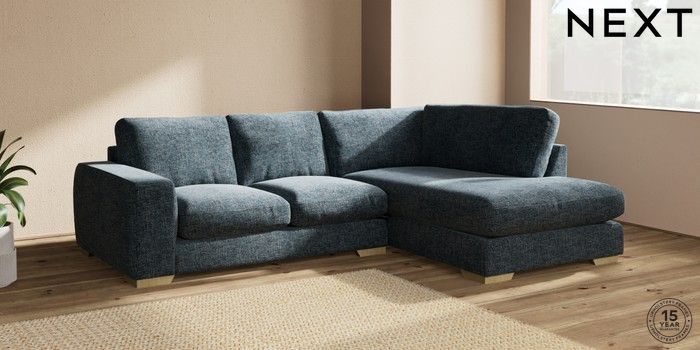 7.2.10 Houghton Deep Relaxed Sit Medium Corner Chaise - Right Hand Chunky Chenille Dark Navy Blue Large Square Angle - Light | Made Click here to use our website with more accessibility support, for example screen readers