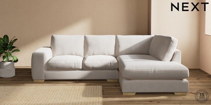 7.2.10 Houghton Deep Relaxed Sit Medium Corner Chaise - Right Hand Chunky Chenille Oyster Large Square Angle - Light | Made Click here to use our website with more accessibility support, for example screen readers