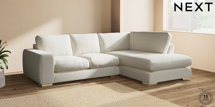 7.2.10 Houghton Deep Relaxed Sit Medium Corner Chaise - Right Hand Chunky Texture Oyster Large Square Angle - Chrome Metal | Made Click here to use our website with more accessibility support, for example screen readers