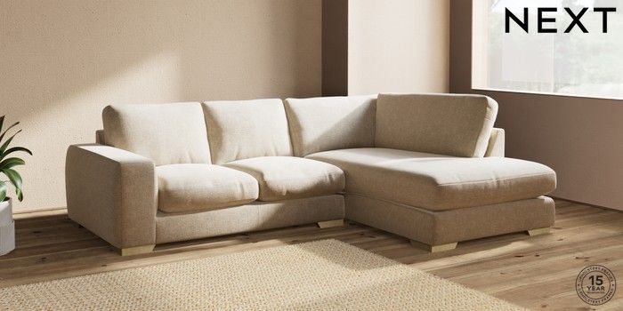 7.2.10 Houghton Deep Relaxed Sit Medium Corner Chaise - Right Hand Chunky Weave Cream Large Square Angle - Light | Made Click here to use our website with more accessibility support, for example screen readers