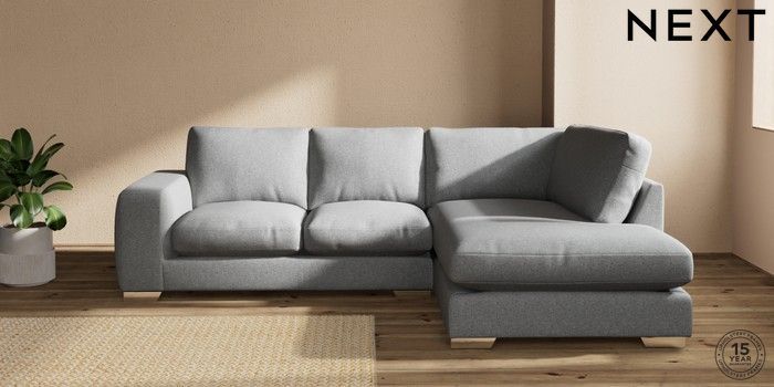 7.2.10 Houghton Deep Relaxed Sit Medium Corner Chaise - Right Hand Chunky Weave Mid Grey Large Square Angle - Chrome Metal | Made Click here to use our website with more accessibility support, for example screen readers