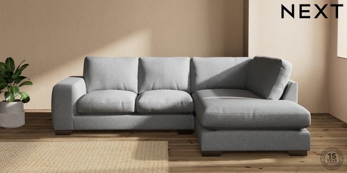 7.2.10 Houghton Deep Relaxed Sit Medium Corner Chaise - Right Hand Chunky Weave Mid Grey Large Square Angle - Gunmetal | Made Click here to use our website with more accessibility support, for example screen readers