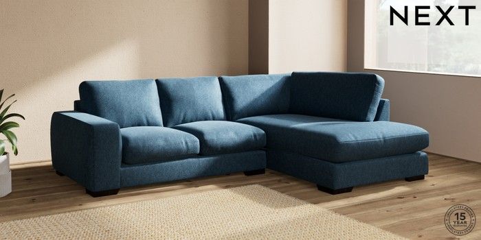 7.2.10 Houghton Deep Relaxed Sit Medium Corner Chaise - Right Hand Cotswold Chenille Dark Blue Large Square Angle - Dark | Made Click here to use our website with more accessibility support, for example screen readers