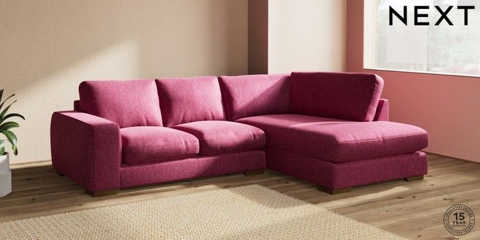 7.2.10 Houghton Deep Relaxed Sit Medium Corner Chaise - Right Hand Cotswold Chenille Dark Raspberry Pink Large Square Angle - Mid | Made Click here to use our website with more accessibility support, for example screen readers