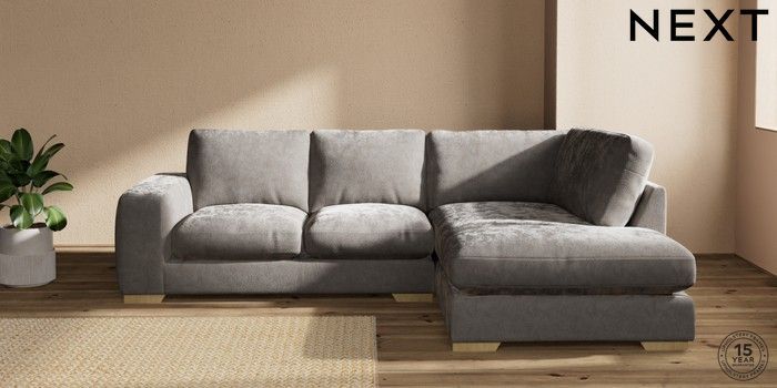 7.2.10 Houghton Deep Relaxed Sit Medium Corner Chaise - Right Hand Distressed Velour French Grey Large Square Angle - Light | Made Click here to use our website with more accessibility support, for example screen readers