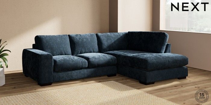 7.2.10 Houghton Deep Relaxed Sit Medium Corner Chaise - Right Hand Distressed Velour Midnight Blue Large Square Angle - Dark | Made Click here to use our website with more accessibility support, for example screen readers