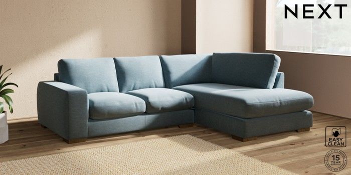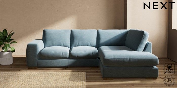 7.2.10 Houghton Deep Relaxed Sit Medium Corner Chaise - Right Hand Fine Chenille Easy Clean Mid Blue Large Square Angle - Mid | Made Click here to use our website with more accessibility support, for example screen readers