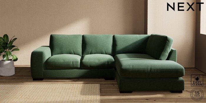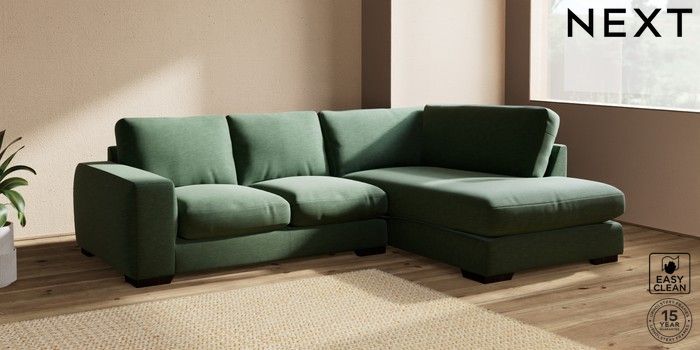 7.2.10 Houghton Deep Relaxed Sit Medium Corner Chaise - Right Hand Fine Chenille Easy Clean Mid Khaki Green Large Square Angle - Dark | Made Click here to use our website with more accessibility support, for example screen readers
