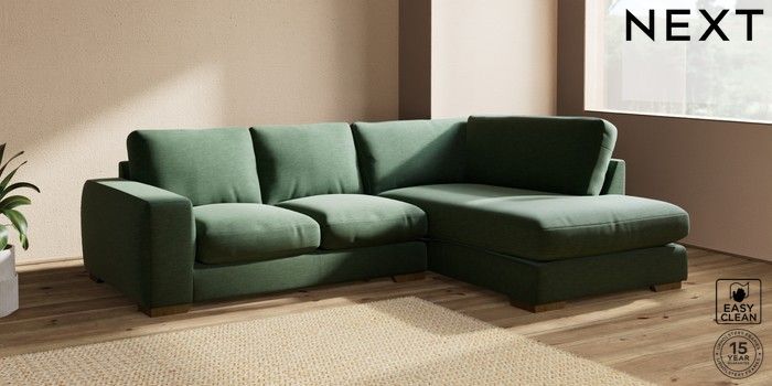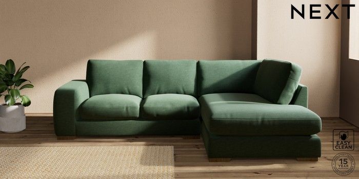 7.2.10 Houghton Deep Relaxed Sit Medium Corner Chaise - Right Hand Fine Chenille Easy Clean Mid Khaki Green Large Square Angle - Mid | Made Click here to use our website with more accessibility support, for example screen readers