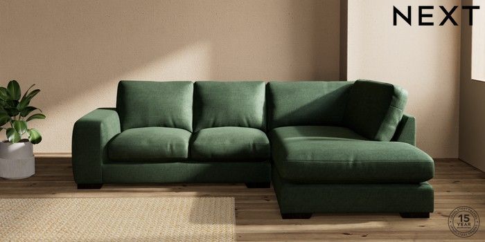 7.2.10 Houghton Deep Relaxed Sit Medium Corner Chaise - Right Hand Luxe Chenille Dark Green Large Square Angle - Dark | Made Click here to use our website with more accessibility support, for example screen readers