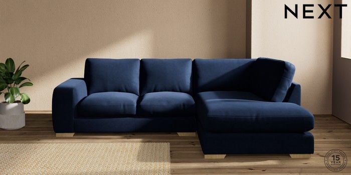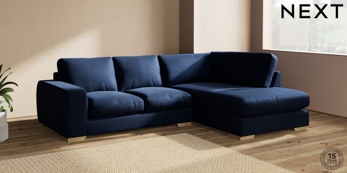 7.2.10 Houghton Deep Relaxed Sit Medium Corner Chaise - Right Hand Luxe Chenille Navy Blue Large Square Angle - Light | Made Click here to use our website with more accessibility support, for example screen readers