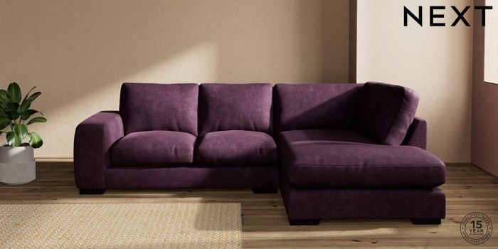7.2.10 Houghton Deep Relaxed Sit Medium Corner Chaise - Right Hand Plush Chenille Dark Plum Purple Large Square Angle - Dark | Made Click here to use our website with more accessibility support, for example screen readers