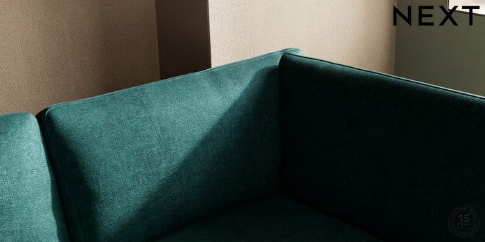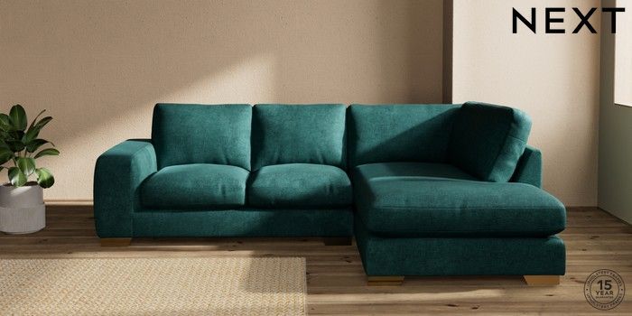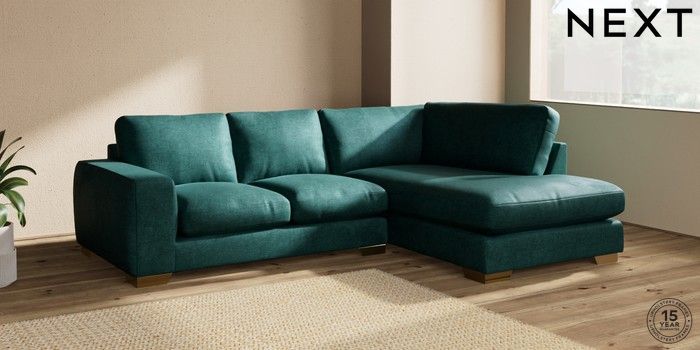 7.2.10 Houghton Deep Relaxed Sit Medium Corner Chaise - Right Hand Plush Chenille Dark Teal Green Large Square Angle - Brushed Brass | Made Click here to use our website with more accessibility support, for example screen readers