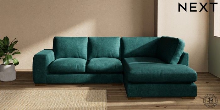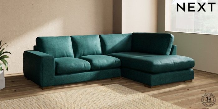 7.2.10 Houghton Deep Relaxed Sit Medium Corner Chaise - Right Hand Plush Chenille Dark Teal Green Large Square Angle - Mid | Made Click here to use our website with more accessibility support, for example screen readers