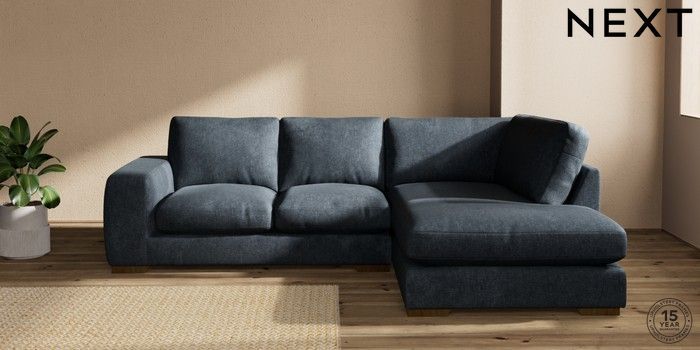 7.2.10 Houghton Deep Relaxed Sit Medium Corner Chaise - Right Hand Plush Chenille Slate Blue Large Square Angle - Mid | Made Click here to use our website with more accessibility support, for example screen readers