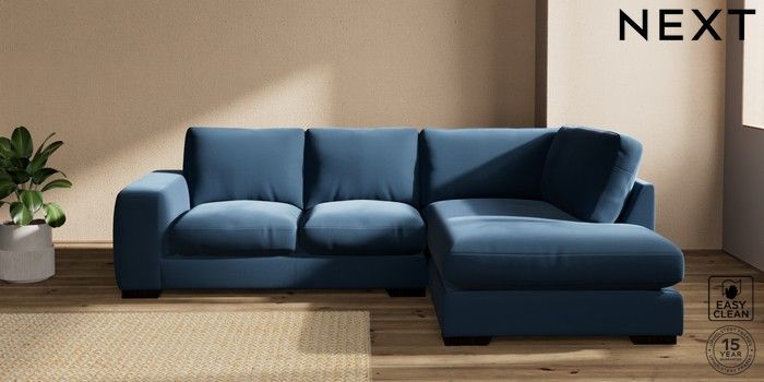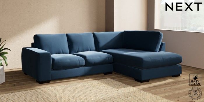 7.2.10 Houghton Deep Relaxed Sit Medium Corner Chaise - Right Hand Plush Velvet Easy Clean Airforce Blue Large Square Angle - Dark | Made Click here to use our website with more accessibility support, for example screen readers