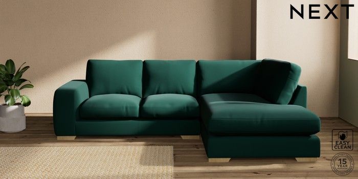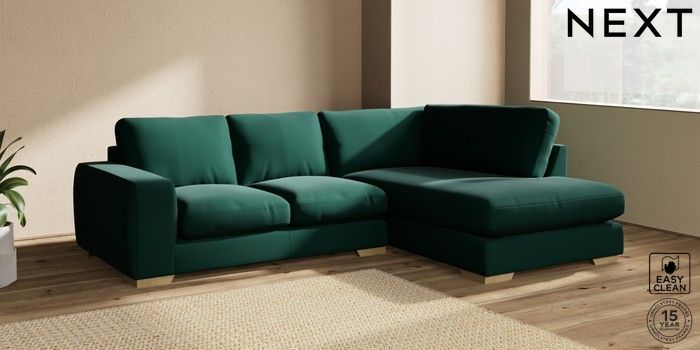 7.2.10 Houghton Deep Relaxed Sit Medium Corner Chaise - Right Hand Plush Velvet Easy Clean Bottle Green Large Square Angle - Light | Made Click here to use our website with more accessibility support, for example screen readers