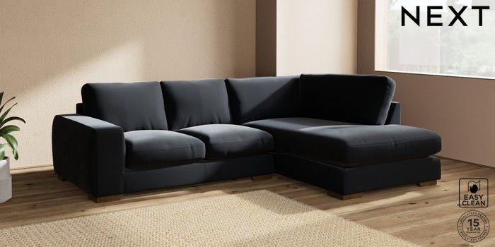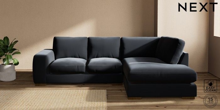 7.2.10 Houghton Deep Relaxed Sit Medium Corner Chaise - Right Hand Plush Velvet Easy Clean Charcoal Grey Large Square Angle - Mid | Made Click here to use our website with more accessibility support, for example screen readers