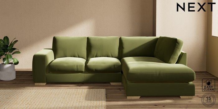 7.2.10 Houghton Deep Relaxed Sit Medium Corner Chaise - Right Hand Plush Velvet Easy Clean Mid Olive Green Large Square Angle - Light | Made Click here to use our website with more accessibility support, for example screen readers