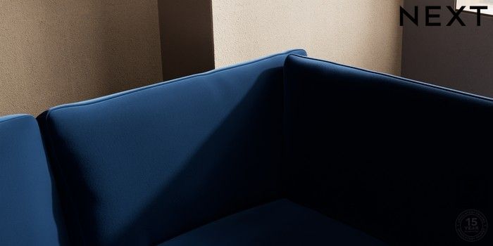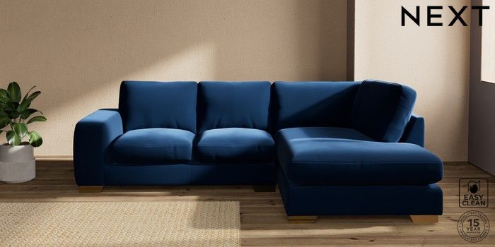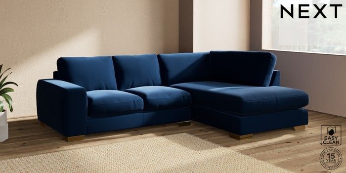 7.2.10 Houghton Deep Relaxed Sit Medium Corner Chaise - Right Hand Plush Velvet Easy Clean Navy Blue Large Square Angle - Brushed Brass | Made Click here to use our website with more accessibility support, for example screen readers