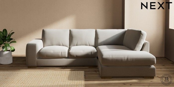 7.2.10 Houghton Deep Relaxed Sit Medium Corner Chaise - Right Hand Ripple Chenille Light Natural Large Square Angle - Mid | Made Click here to use our website with more accessibility support, for example screen readers