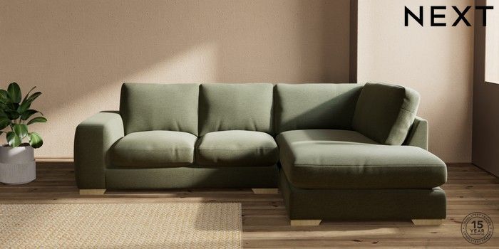 7.2.10 Houghton Deep Relaxed Sit Medium Corner Chaise - Right Hand Ripple Chenille Mid Moss Green Large Square Angle - Light | Made Click here to use our website with more accessibility support, for example screen readers