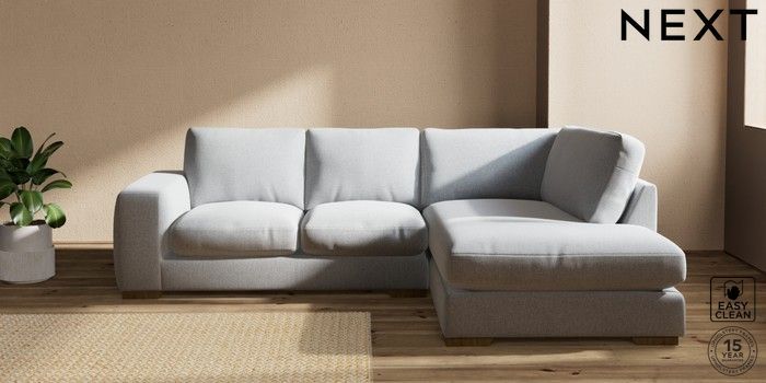 7.2.10 Houghton Deep Relaxed Sit Medium Corner Chaise - Right Hand Tweedy Blend Easy Clean Light Silver Grey Large Square Angle - Mid | Made Click here to use our website with more accessibility support, for example screen readers