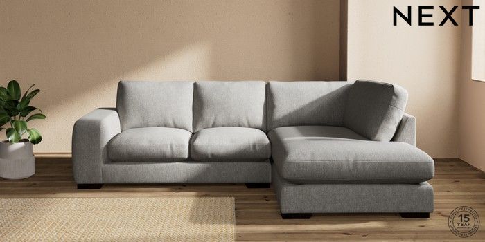 7.2.10 Houghton Deep Relaxed Sit Medium Corner Chaise - Right Hand Tweedy Chenille Mid Grey Large Square Angle - Dark | Made Click here to use our website with more accessibility support, for example screen readers