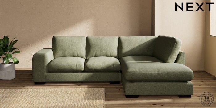 7.2.10 Houghton Deep Relaxed Sit Medium Corner Chaise - Right Hand Tweedy Chenille Mid Moss Green Large Square Angle - Dark | Made Click here to use our website with more accessibility support, for example screen readers