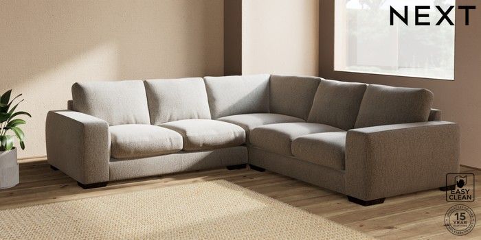 7.2.10 Houghton Deep Relaxed Sit Medium Corner Sofa - Universal Chunky Boucle Easy Clean Dove Large Square Angle - Dark | Made Click here to use our website with more accessibility support, for example screen readers